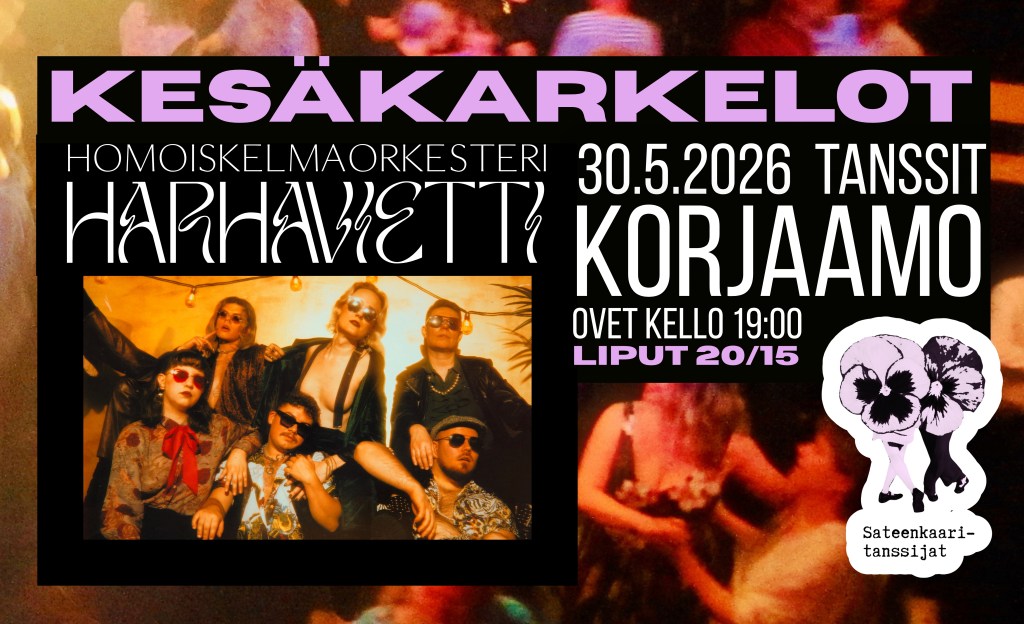 Sävelet tansseihin soittaa tällä kertaa ihka oikea orkesteri, eikä ihan mikä tahansa sellainen! Valloittava homoiskelmäorkesteri Harhavietti saa hymyn huulille ja laittamaan jalalla koreasti.